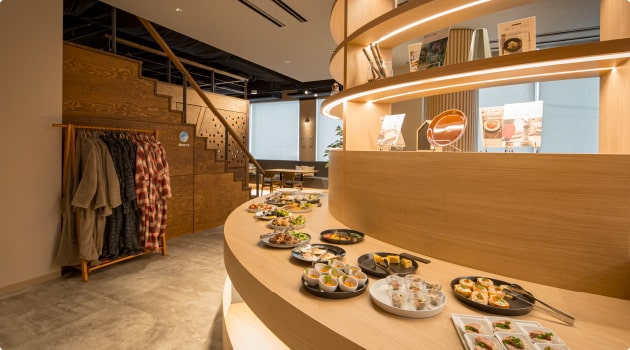 宿泊者限定ラウンジ「星のラウンジ」にて。ウェルカムドリンクや、当ホテル限定「温泉まんじゅう」、お菓子バイキングなど様々なラウンジサービスをご用意しています。