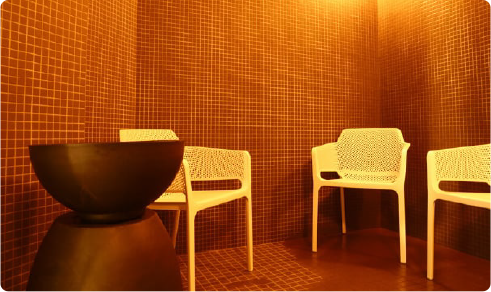 3つは、つるつる美肌を実感「塩サウナ」じっくりと汗をかく塩サウナ、温度は約45℃と低めです。室内にある塩を体に塗ってサウナ浴をお楽しみください。体に塩を塗ることで保水力の高い皮脂膜が作られ、肌がつるつるになる、美肌効果が期待できます。