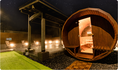 2つ目は、木のぬくもりとアロマの香りに包まれる「バレルサウナ」フィンランド式サウナのひとつバレルサウナは、フィンランドに古くから伝わる樽型のサウナです。その形から熱や蒸気が部屋にまんべんなく行き渡るため、通常のサウナよりも熱気を感じやすいといわれています。