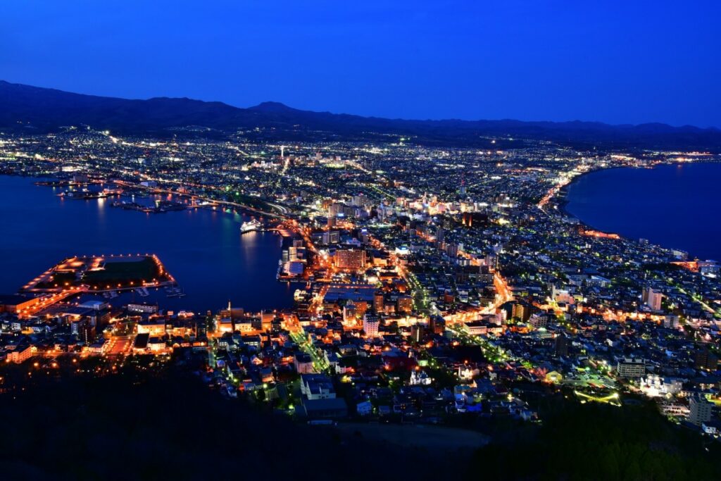 函館山の夜景は、世界三大夜景として登録されたほどの美しさです。この美しい景観は、山頂の展望台から見ることができ、街全体が青い光に包まれたような幻想的な体験を過ごすことができます。 特にカップルにとって、函館の夜景はロマンチックな雰囲気が漂い、特別な時間を過ごすのに最適なスポットです。 また、夜景鑑賞は季節によって異なる魅力を持っています。春の桜、夏の鮮やかな緑、秋の紅葉、冬の銀世界と、四季折々の風景が織りなす絶景は、何度訪れても新しい発見をもたらします。函館を訪れた際は、必ずこの素晴らしい夜景を満喫しましょう。
