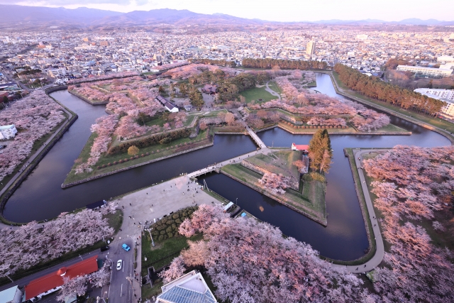 五稜郭は、江戸時代末期に造られた星形(五角形)の西洋式城郭